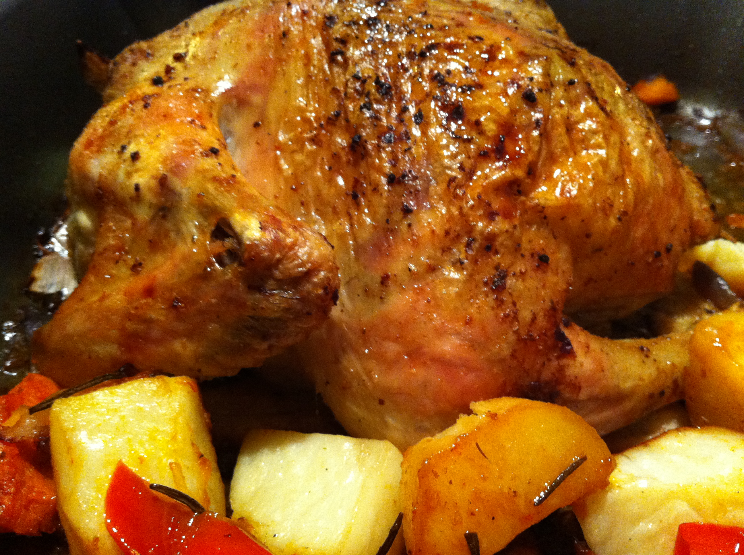 Wow, your roast chicken certainly looks more succulent than our cinnamon non-crunchy chicken! Great of you to help out with the children’s costumes.