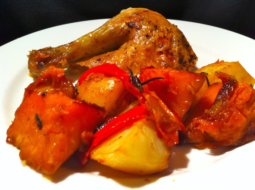 I went with our favourite mix of potatoes, pumpkin, red capsicums and spanish onions.