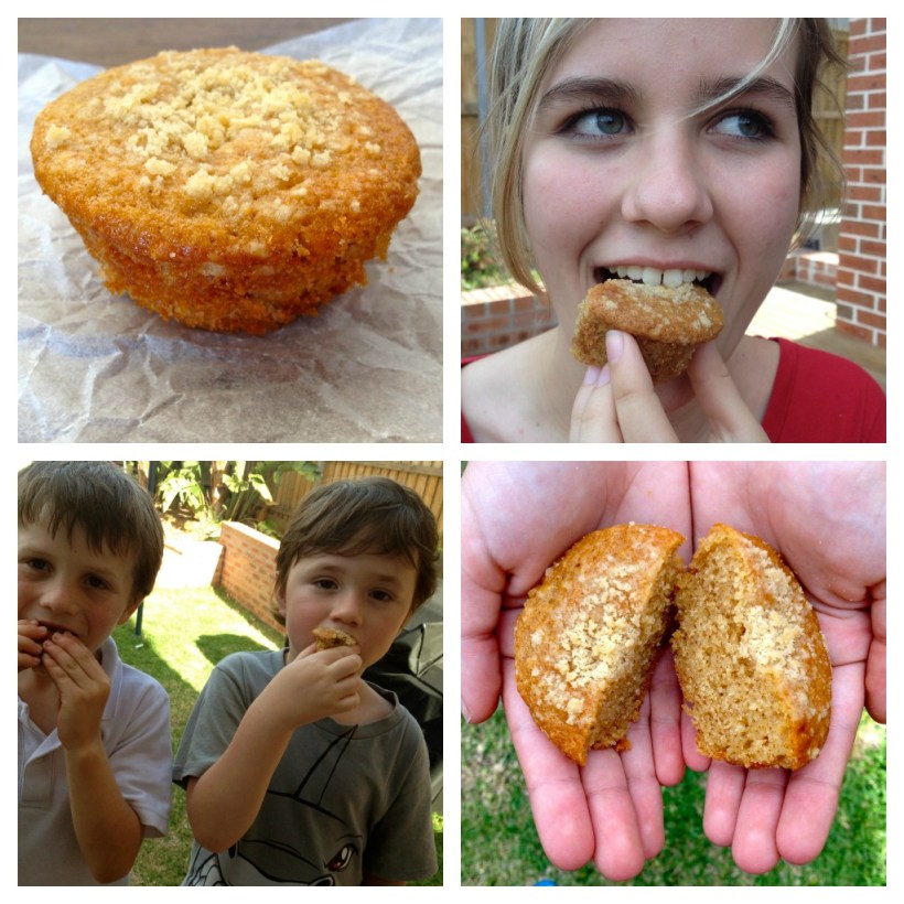 I agree….sometimes simple is so good. I liked your photos of people actually eating the muffins. (good idea) Action shots! ;O)