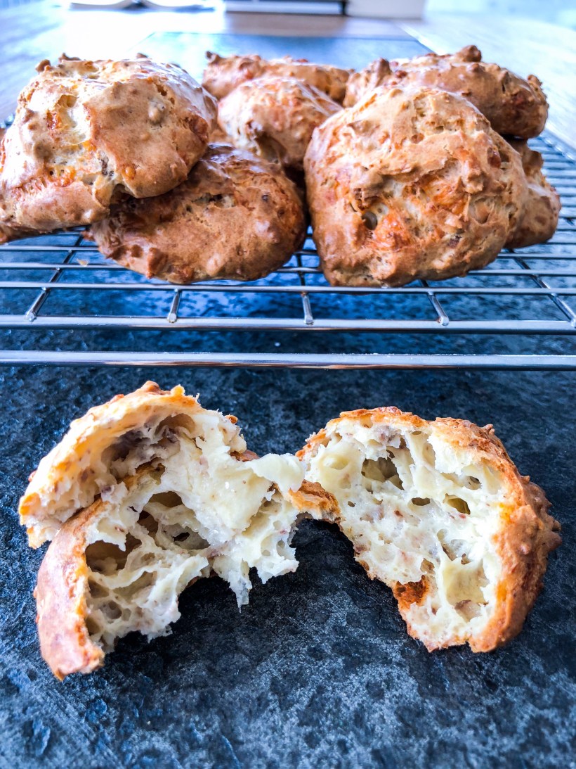 I made the recipe, took half out before I added the pecans (we have nut allergies in the house and different kids are allergic to different nuts…) and I froze them! I followed the directions and felt very accomplished having a bag of frozen gourgères in my refrigerator for guests!